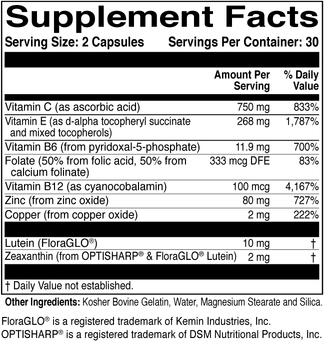 MacularProtect delivers the nutrients at levels found to help to promote healthy vision in the AREDS and AREDS2 clinical trials, including 10 mg of lutein and 2 mg of zeaxanthin. It also includes important B vitamins linked to macular health in research.